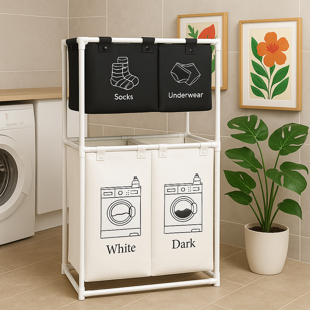 Esta innovadora cesta organizadora de dos niveles es la solución perfecta para mantener la ropa ordenada antes del lavado. Con un diseño funcional y elegante, te permite separar la ropa por colores o tipo de tela, evitando mezclas accidentales y facilitando tu rutina diaria. Su estructura desmontable y su material transpirable garantizan comodidad, higiene y máxima eficiencia en cualquier espacio.